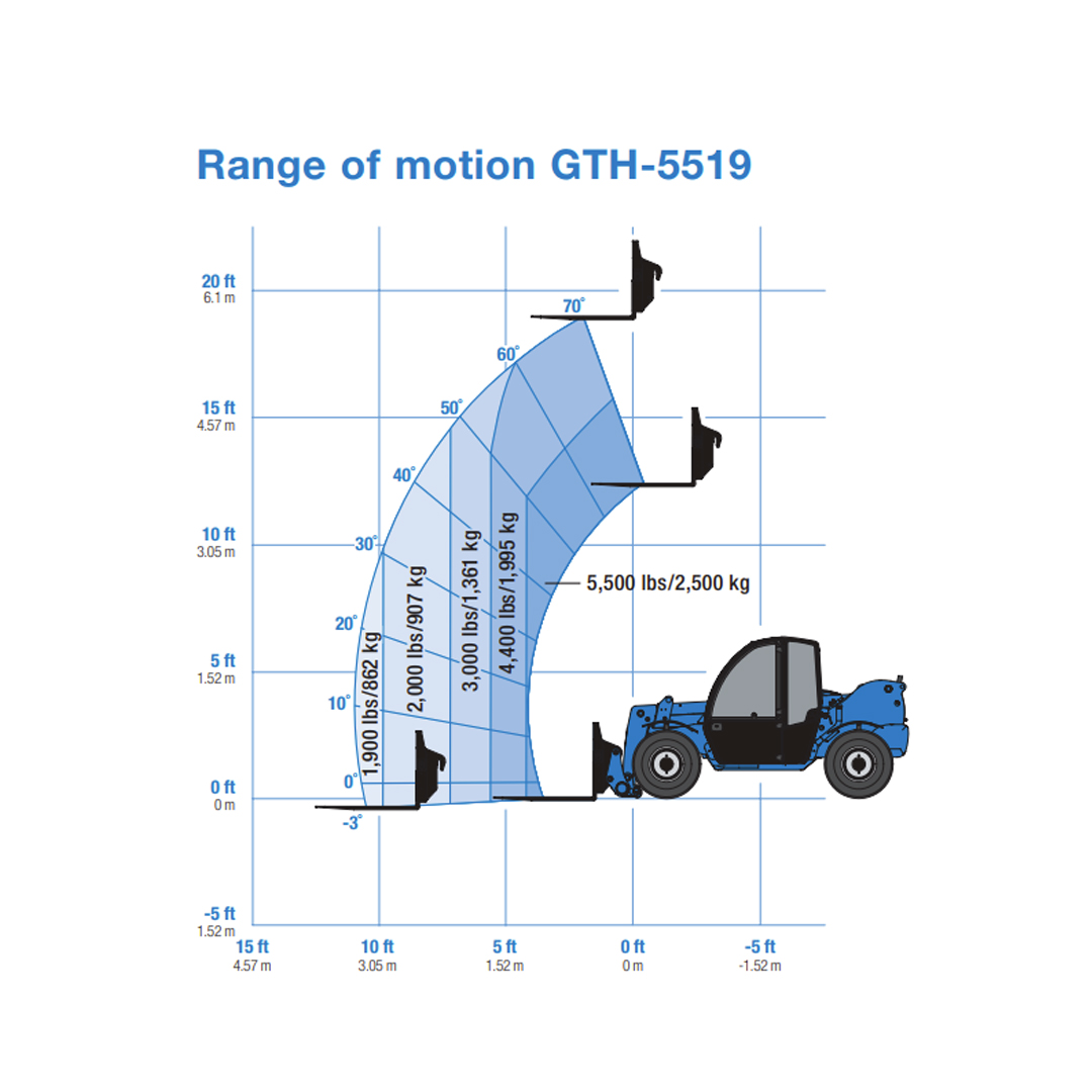 The Genie® GTH™-5519 compact telehandler is the perfect choice for tasks both large and small. Easy to maneuver and transport, and convenient to service, it meets the needs of most construction, masonry, landscape and agricultural applications.